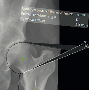 Việc phẫu thuật xương được lên kế hoạch sử dụng góc xoay này được tạo ra trong hình ảnh đã lên kế hoạch. Các bác sĩ phẫu thuật lập kế hoạch cắt xương chính xác đối với vùng mấu chuyển xương đùi. Dựa trên các sai lệch của trục chi, chức năng “Intertrochanteric osteotomy” có thể đưa ra gợi ý tới khả năng bảo tồn trì hoãn hay bắt buộc phải thay khớp háng.