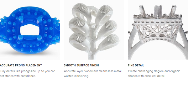 Sử dụng Castable Resin cho phép Formlab Form 2 in ra những đồ trang sức hay kim loại khác với độ tinh xảo cao với chi tiết rất nhỏ (từ 25 micron)