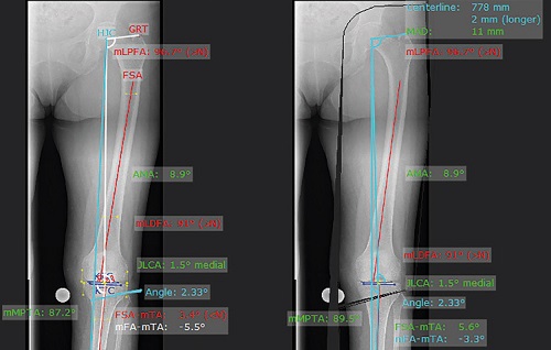 Phần mềm có thể phân tích xác định loại, số lượng, kích thước và vị trí của u xương. Khi việc điều chỉnh hoàn tất, tất cả các trục chịu trọng lượng cơ học liên quan đến khớp và các tiếp tuyến của khớp phải nằm trong phạm vi bình thường.