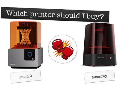 Máy in Moonray S của Sprintray là một chương trình yêu thích khác và được giới thiệu tại gian hàng Digital Men. Giống như Formlabs, Máy in 3D Moonray cũng có nhiều loại nhựa (resin) khác nhau, nhưng Moonray là một máy in DLP và sử dụng ánh sáng tia cực tím từ một máy chiếu DLP để chữa các bản in của bạn. Không giống như công nghệ Laser SLA của Fomlabs Form 2, Máy in 3D Moonray in toàn bộ lớp tại một thời điểm, trên nền tảng in 3D. Điều này có nghĩa là mất ít thời gian hơn để in.