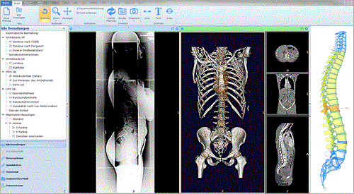 Bác sĩ có thể thực hiện phẫu thuật chỉnh hình 3D cột sống với hình ảnh 3D bằng cách sử dụng dữ liệu CT và MR, đồng thời với hình ảnh x-quang 2D (DICOM và JPEG).