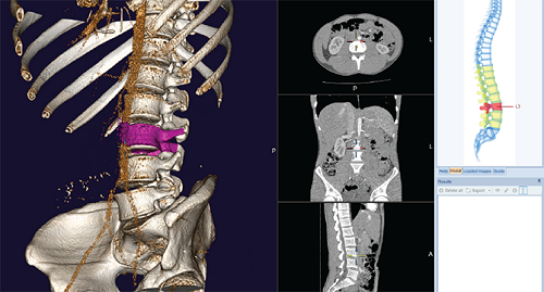 Phần mềm mediCAD ® 3D Spine tự động phân đoạn xương từ dữ liệu trong file CT. Dữ liệu trong tệp CT của bệnh nhân được phân tích chính xác và so sánh với kho dữ liệu của phần mềm phẫu thuật chỉnh hình.