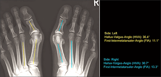 Chỉ trong vài lần nhấp chuột, mediCAD® đưa ra cho bác sỹ cái nhìn tổng quan chính xác về độ vững của cổ chân thông qua các phim chụp xương chịu trọng lực.
