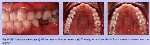 Mini vít được cắm ở phía má và phía lưỡi răng 26 (Hình 4-265). Attachment được gắn ở răng 25, 26, và 27 cho rãnh lớn của khay trong suốt.