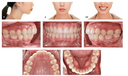 Hồ sơ cuối cùng. (hh và ii) So sánh các phim cephalometric trước và sau điều trị. Lưu ý sự kéo ra sau của răng cửa và cải thiện độ nghiêng răng cửa.
