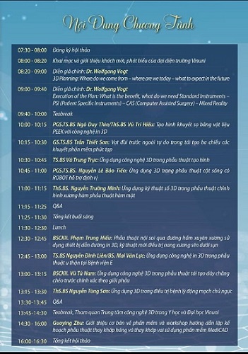 Đặc biệt, hội thảo có sự tham gia của Giáo sư Wolfgang Vogt - Chuyên gia Chấn thương chỉnh hình ứng dụng công nghệ 3D hàng đầu thế giới cùng đội ngũ MediCAD (công ty Calmax Việt Nam) - một trong những đơn vị phát triển phần mềm thiết kế 3D tốt nhất hiện nay.
